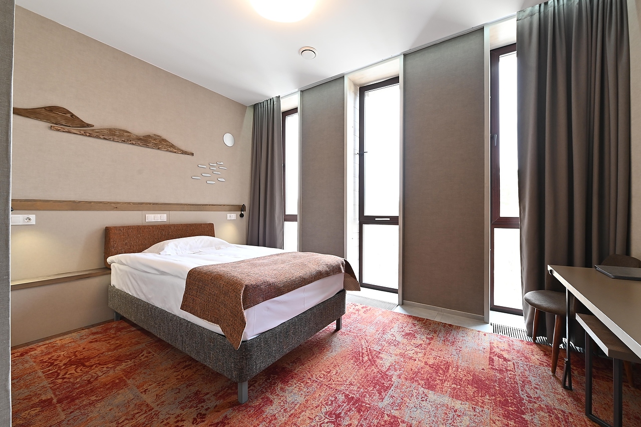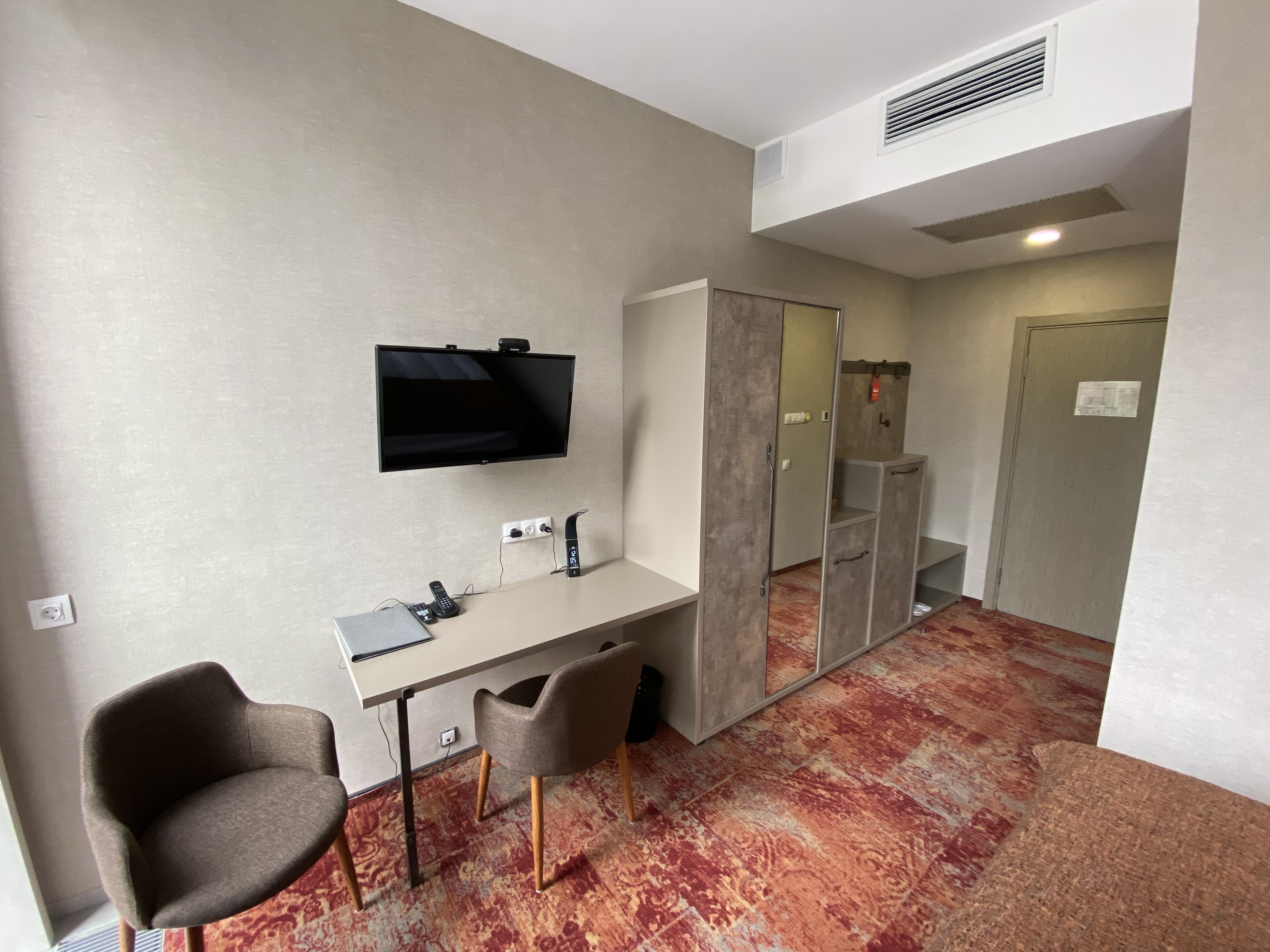 Одноместный улучшенный номер с полутороспальной кроватью Номер идеально подходит для проживания во время командировок и деловых поездок. Оборудован всем необходимым, достаточно просторный и светлый.