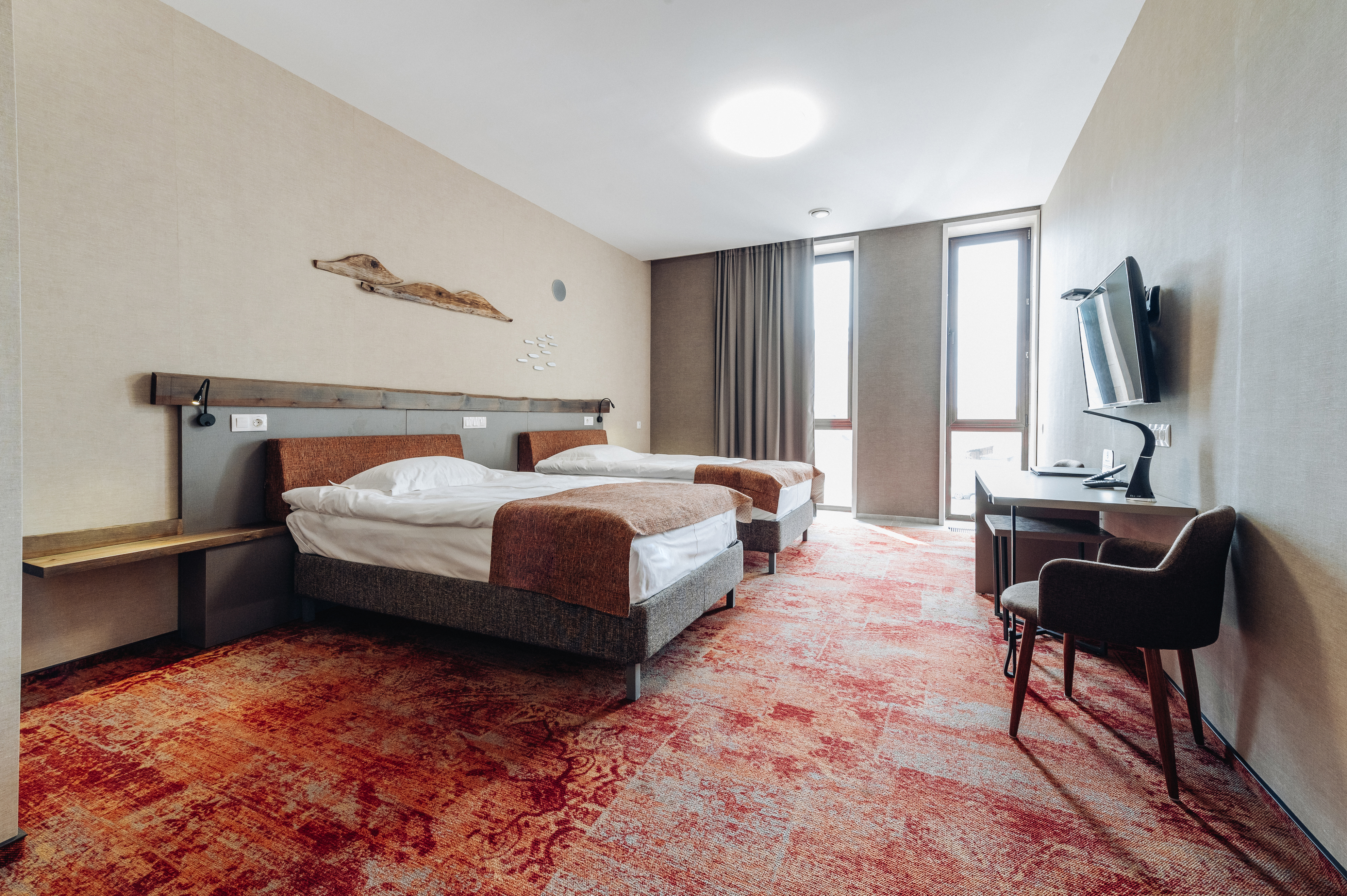 Комфортный номер с двумя раздельными кроватями Отличный вариант для групповых поездок, а также для проживания детей и командировочных коллег. Отдельные спальные места для каждого гостя, уют и комфорт. Номера очень просторные, а из окон открывается прекрасный вид на живописный парк.
